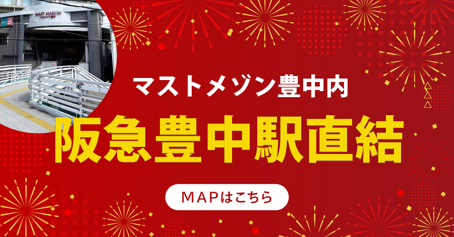 箕面市、豊中市、吹田市、北千里、桃山台、緑地公園、江坂、関大前、千里山、少路の方々にもアクセスしやすい場所にあります。